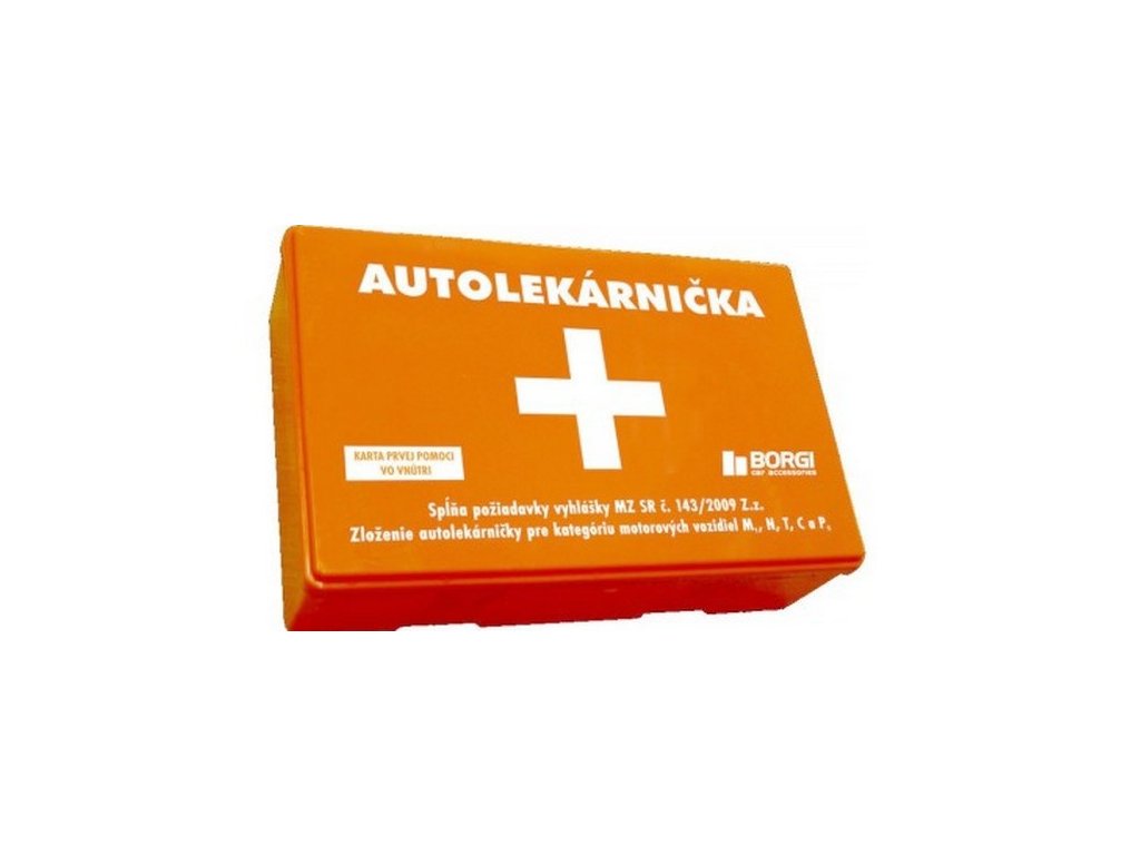 Zloženie zodpovedá vyhláške MZ SR č. 143 / 2009 Poskytnúť prvú pomoc druhému, to je základná morálna povinnosť každého z nás. Autolekárnička nám na cestách v prípade potreby poskytuje základný zdravotnícky materiál na ošetrenie zranení. Vieme ju však v kritickej chvíli použiť?