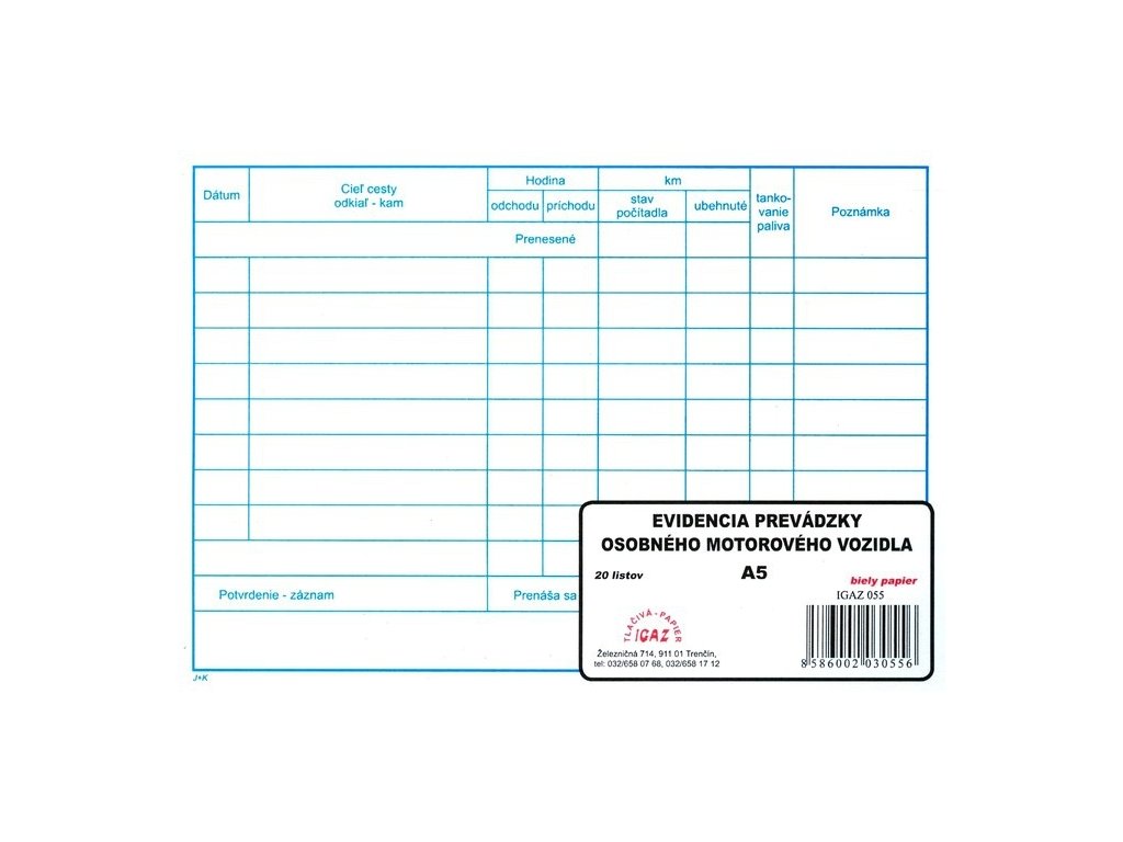 Záznam o prevádzke os. vozidla
